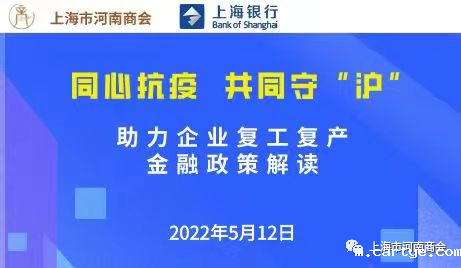 5月12日,上海市河南商会、上海银行总行营业部联合主办“同心抗疫,共同守‘沪’”助力企业复工复产金融政策解读视频讲座。近期,上海疫情防控形势逐步向好发展,为了提前做好复工复产的准备工作、上海市河南商会邀请了上海银行总行的几位金融专家从复工复产支持政策、企业纾困产品、cartye专项服务政策等方面做了详细的解读。通过视频讲座,给企业带来金融政策的支持,解决企业复工复产中遇到的困难,帮助快速走出困境。