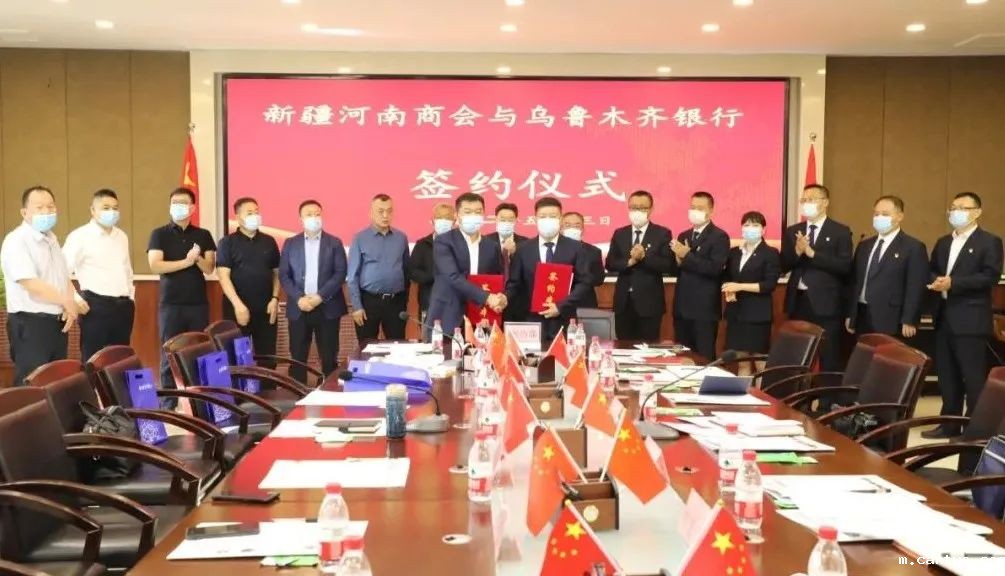 5月13日,新疆河南商会与乌鲁木齐银行举行座谈会并签订了战略合作协议。双方在座谈中围绕银企合作等问题开展了深入交流,并表示将充分发挥各自优势,持续深化互利合作。座谈会后乌鲁木齐银行与新疆河南商会签署150亿元全面战略合作协议,并与商会会员企业九天河投资、融信源投资、康元生物、玛纳斯祥云化纤、河南能化新疆投资公司、若羌县阳光煤矿公司6家企业签署业务合作框架协议,整体签约资金达30亿元。