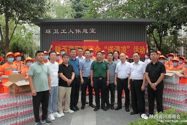 持续的高温“烤”验着坚守在一线的环卫工人们,7月12日,陕西省河南商会党支部组织开展了“下街道为环卫工人送清凉活动”,为经开区奋战在酷暑天气下一线的环卫工人们送去了矿泉水、绿豆干果、冰糖以及驱蚊虫花露水、风油精等消暑物品,送去来自陕西省河南商会的关怀,帮助他们在炎热天气中防暑降温、平安度夏。商会党支部书记常梦春向环卫工人表示了亲切的问候,向他们在高温酷暑天气依然坚守在工作一线,为市民朋友营造干净清洁的街道环境表示感谢,并叮嘱大家在做好本职工作的同时,要注意防暑降温,确保自身的健康和安全。