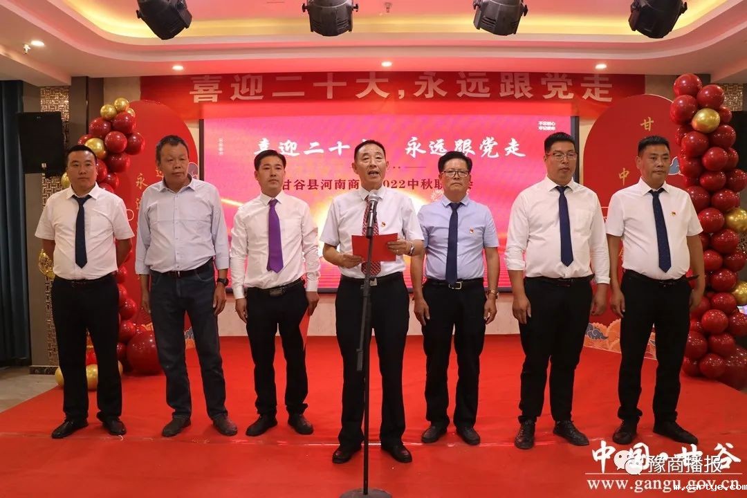 9月10日,甘谷县河南商会举行“喜迎二十大·永远跟党走”中秋联谊会,在甘谷创业的河南商会乡亲欢聚一堂,畅叙乡情,共谋发展,共庆佳节。联谊会现场热闹、喜庆,气氛和谐,大家同怀故里,共叙乡情,使长期远离家乡,艰苦打拼的河南企业家们倍感温馨,倍受鼓舞。他们纷纷表示将不辜负商会和在甘谷河南人的期望,百尺竿头更进一步,推动商会工作不断迈上新台阶,努力发扬好河南精神,为家乡增光添彩,把浓浓的情谊化作动力,为甘谷发展建设出力尽责。