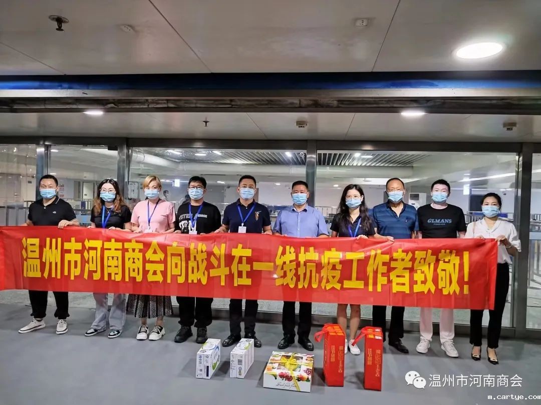 9月18日,温州市河南商会组织开展慰问一线防疫人员,勇于承担社会责任活动。商会党支部负责人管继红带队,商会秘书处、慈善义工部负责人等一行首先来到温州动车南站,带着饮料和时令水果,慰问坚守岗位的一线疫情防控人员。