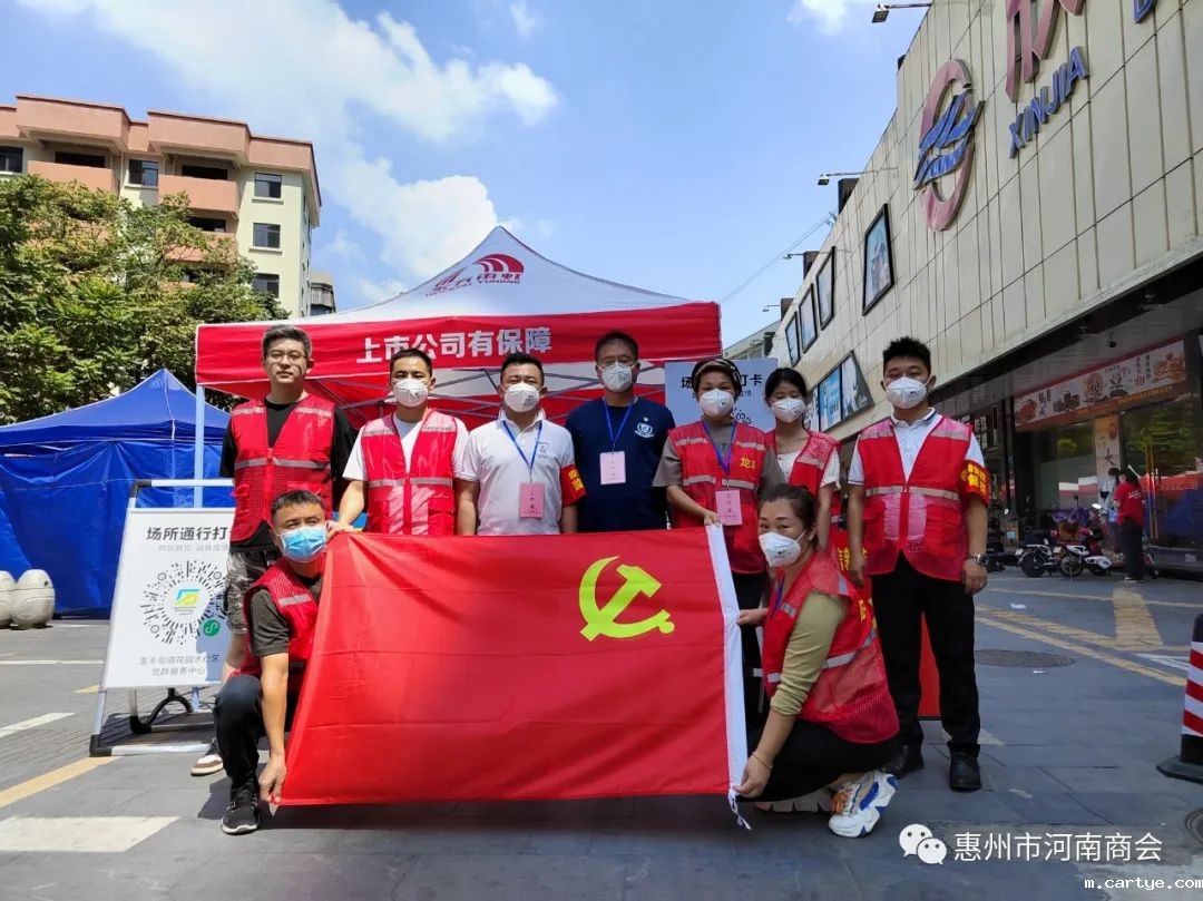 10月5日,惠州市河南商会党支部接到当地非公党委通知,党支部书记王有钱率领部分党员、预备党员及入党积极子积极加入疫情防控党员突击队,一起参加防疫防控公益活动。志愿者们全程听从指挥、分工明确、各尽其责。惠州市河南商会党支部志愿者们用耐心细致的服务诠释着“奉献、友爱、互助、进步”的志愿精神,用实际行动践行了“全心全意为人民服务”的宗旨,彰显党员的先锋模范作用,展示惠州市河南商会党支部良好形象和责任担当,让党旗在一线高高飘扬。