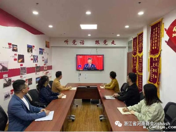 浙江省河南商会集体组织收看党的二十大开幕,聆听了习近平总书记的报告,使每位参加者既激动又深受感动!在学习报告时纷纷发言谈听后感悟,结合商会会员企业实际谈体会谈看法和想法。