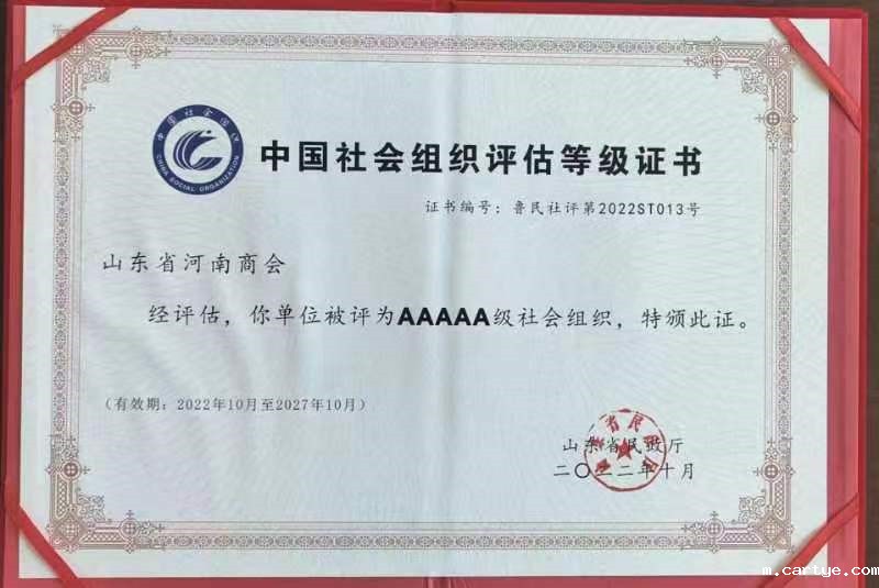 近日,山东省民政厅通报2022年度山东省社会组织评估等级结果,山东省河南商会被评为最高等级5A级商会。商会表示,将不辜负各级政府、领导的期望,以学习贯彻党的二十大精神为契机,埋头苦干,勇于创新,向着“百年cartye,世代传承”的美好愿景不断前进。