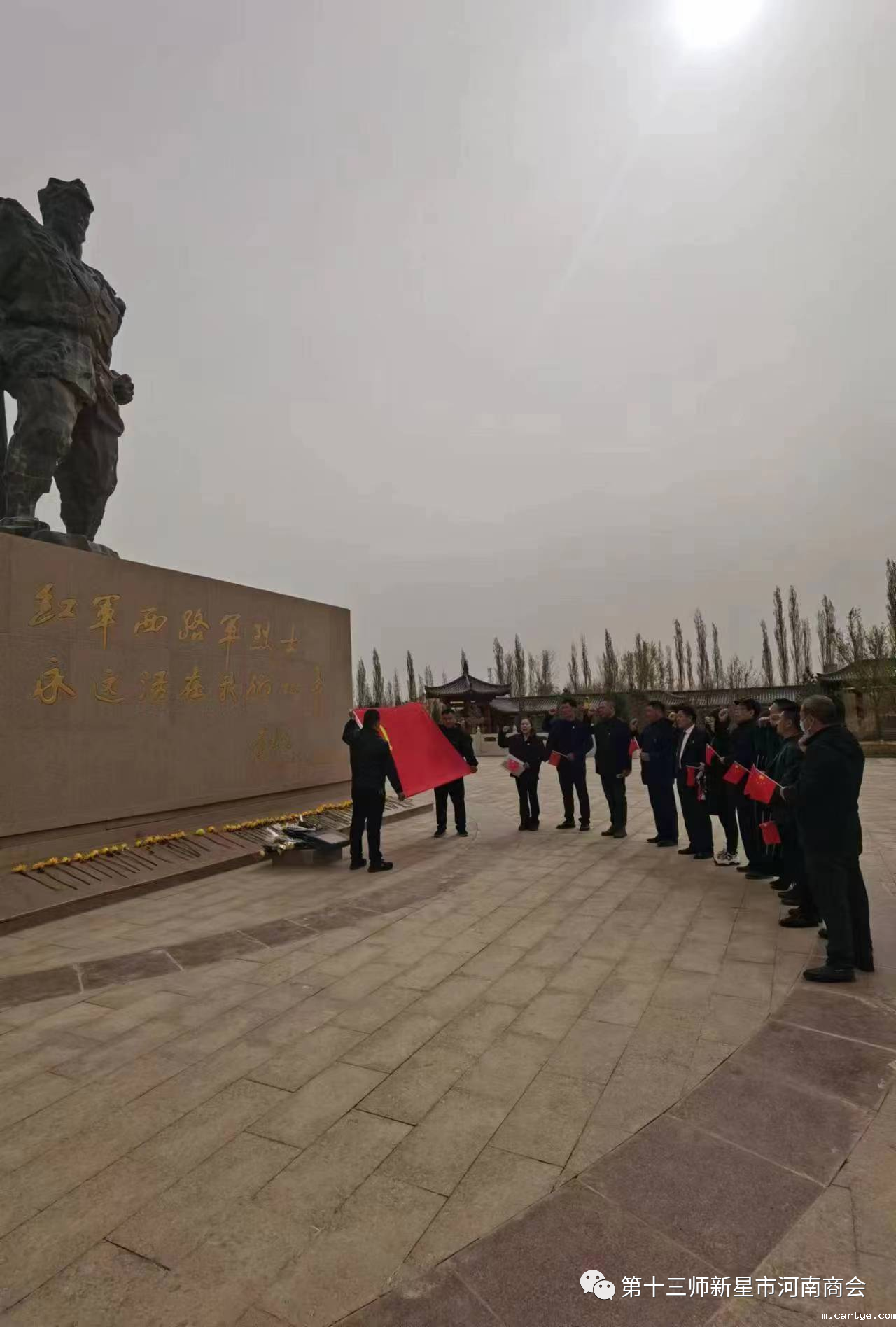 4月3日,由第十三师新星市河南商会党支部、哈密市河南商会党支部共计20余人前往西路军纪念馆开展“缅怀先烈、牢记历史——向革命烈士敬献鲜花”清明祭英烈主题党日活动。全体人员来到哈密市红军西路军进疆纪念园,向长眠于此的革命烈士进行了敬献鲜花、凝重默哀、重温入党誓词等纪念活动。并参观了以“永远的星星峡”为题的大型展览,再现了中国工农红军西路军浴血奋战。通过本次活动,让大家真切地体会到革命先烈们坚贞不屈、英勇无畏的革命精神,更让大家明白缅怀先烈、赓续红色血脉,传承红色精神,感悟红色历史是我们每一人的必修课、基础课,我们要在革命先烈火热的生命历程中,汲取力量,继承遗志,开拓未来。