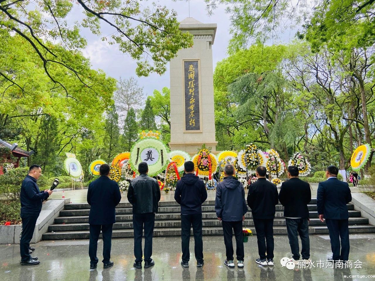 4月4日,丽水市河南商会临时党支部党员、积极分子前往万象山烈士纪念园开展“祭烈士魂,树荣辱观——向革命烈士敬献花篮”清明祭扫活动。全体人员在万象山烈士陵园内烈士墓正前方整齐列队肃立,向烈士革命烈士致敬,并向革命烈士鞠躬默哀、敬献鲜花,以此寄托对革命先烈的无限哀思,深切缅怀为革命事业献身的先驱们。大家表示,一定铭记历史留给我们惨痛教训,继承先辈遗志,扛起时代责任,深入学习贯彻党的二十大会议精神,坚定理想,不忘初心、牢记使命,百折不挠、勇敢前行,无负时代、无负历史,为实现中华民族的伟大复兴贡献自己的力量和智慧。