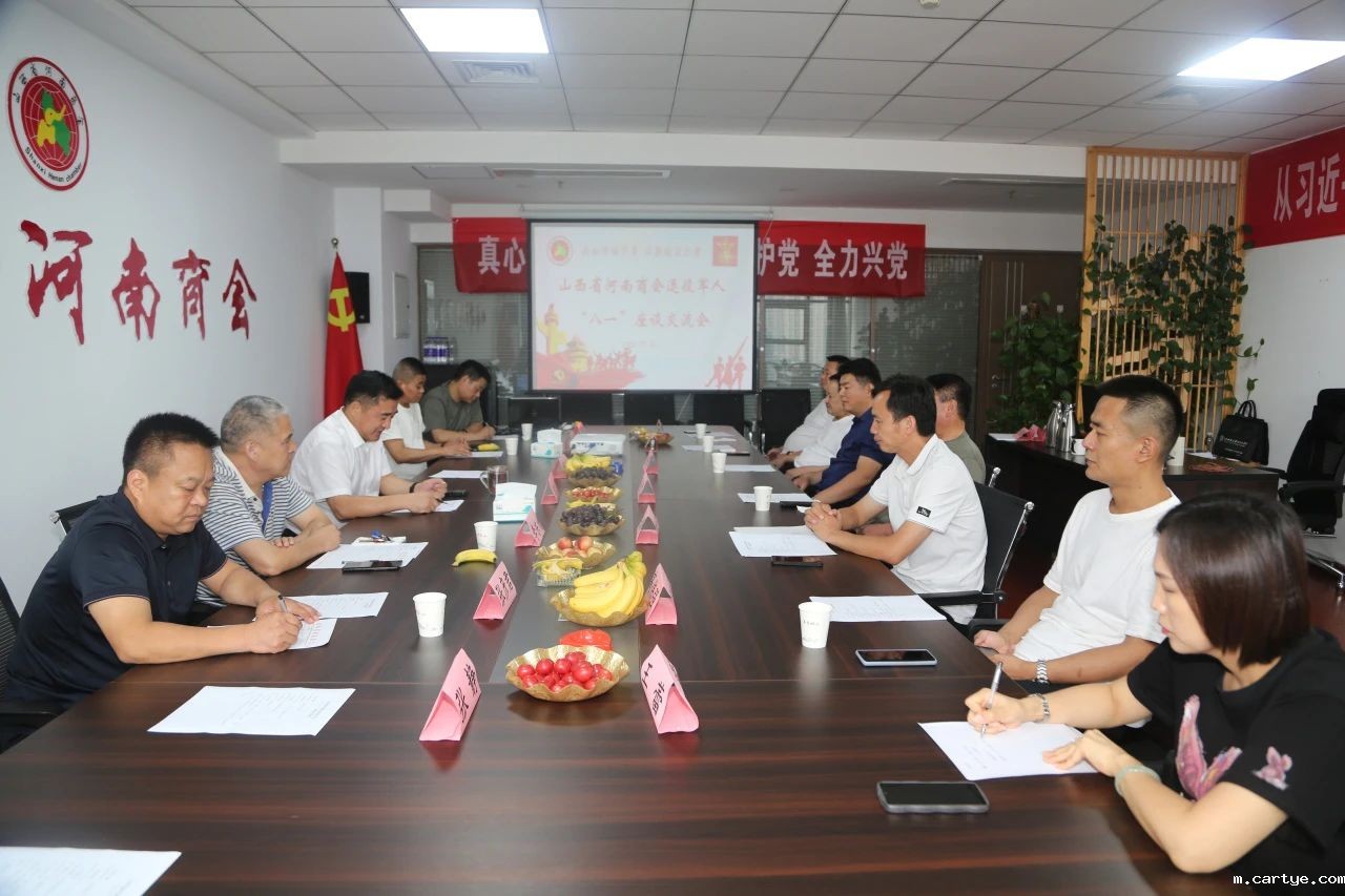 7月31日下午,山西省河南商会组织召开退役军人“八一”座谈交流会,邀请部分商会顾问中的军转干部和会员企业退役军人参加了座谈会。