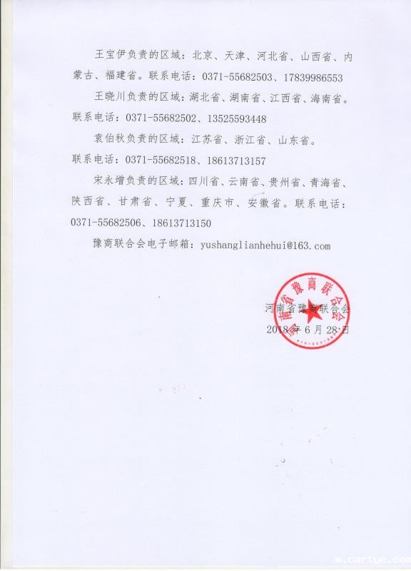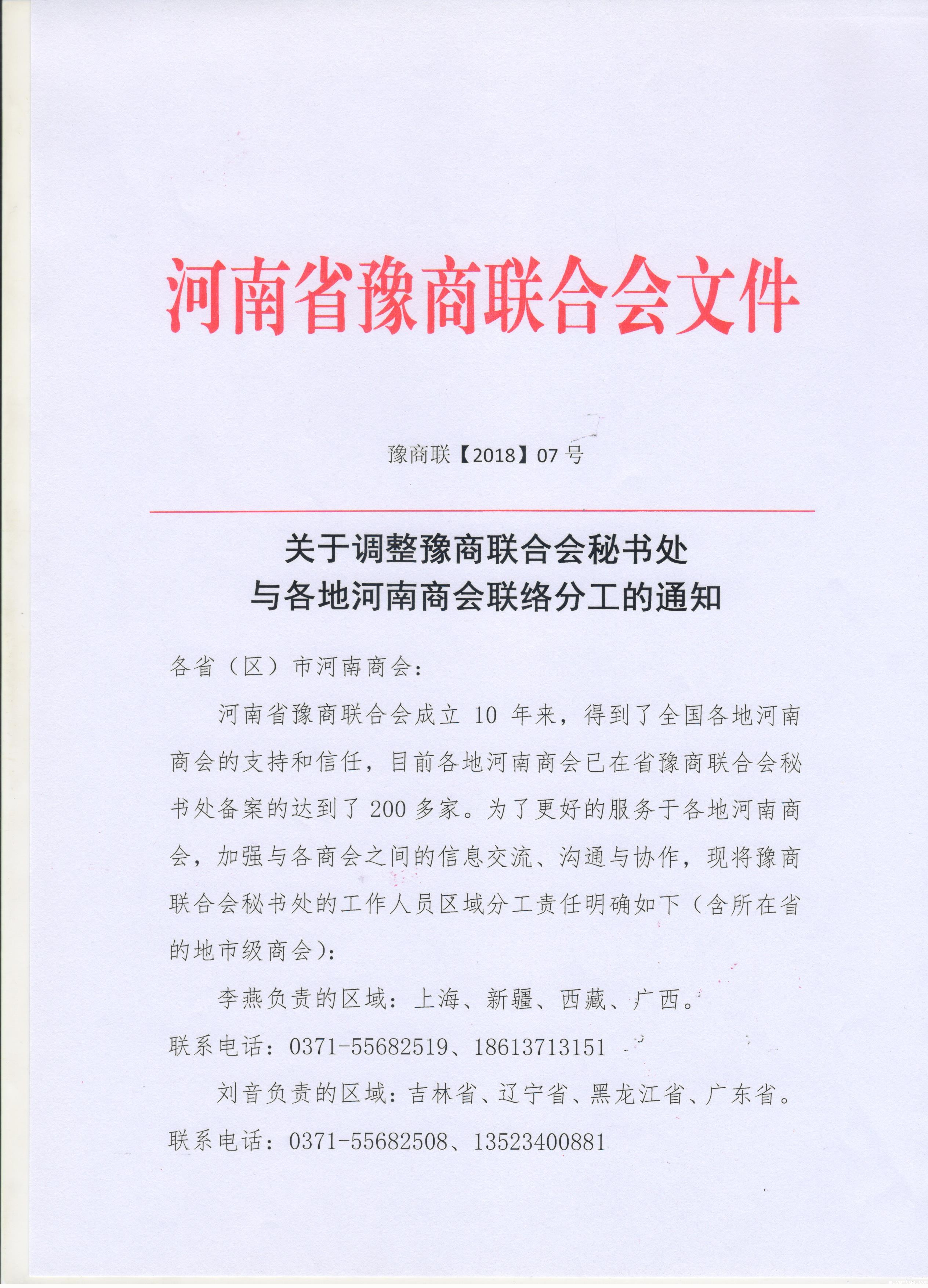 关于调整优米体育总部地址电话秘书处与各地河南商会联络分工的通知