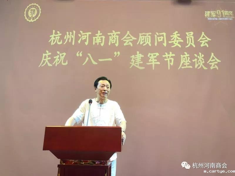 顾问会员会主任韩士和,要求杭州河南商会再接再厉,更上一层楼。并感谢杭州河南商会此次举办的八一建军节座谈会。