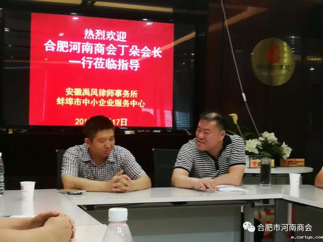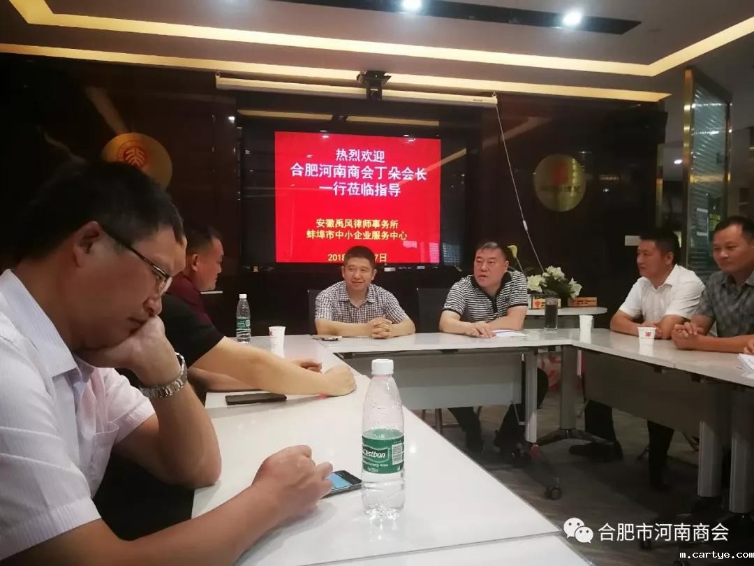 蚌埠河南商会会长牛瀚筠携副会长段练、曹晓房、赵朝龙、宋士林、惠晓敏及秘书处主任黄美玲给予了热烈的欢迎并进行了座谈。座谈会上,我会向对方赠送了原蚌埠市委书记徐景仁的墨宝“诚信赢天下”。双方将各自商会的建设和发展进行了深度的交流,共同发表了一些新的看法与好的意见。通过交流,我们了解到蚌埠河南商会虽然成立时间较短,但是发展相当快速,组织建设比较完善,不但建立了“商会党支部”还将商会会员家属组织在一起,成立了“商会妇联”,让家属也加入到商会组织中,使得彼此相互理解,相互支持,构建一个更加稳定幸福和谐的家庭。