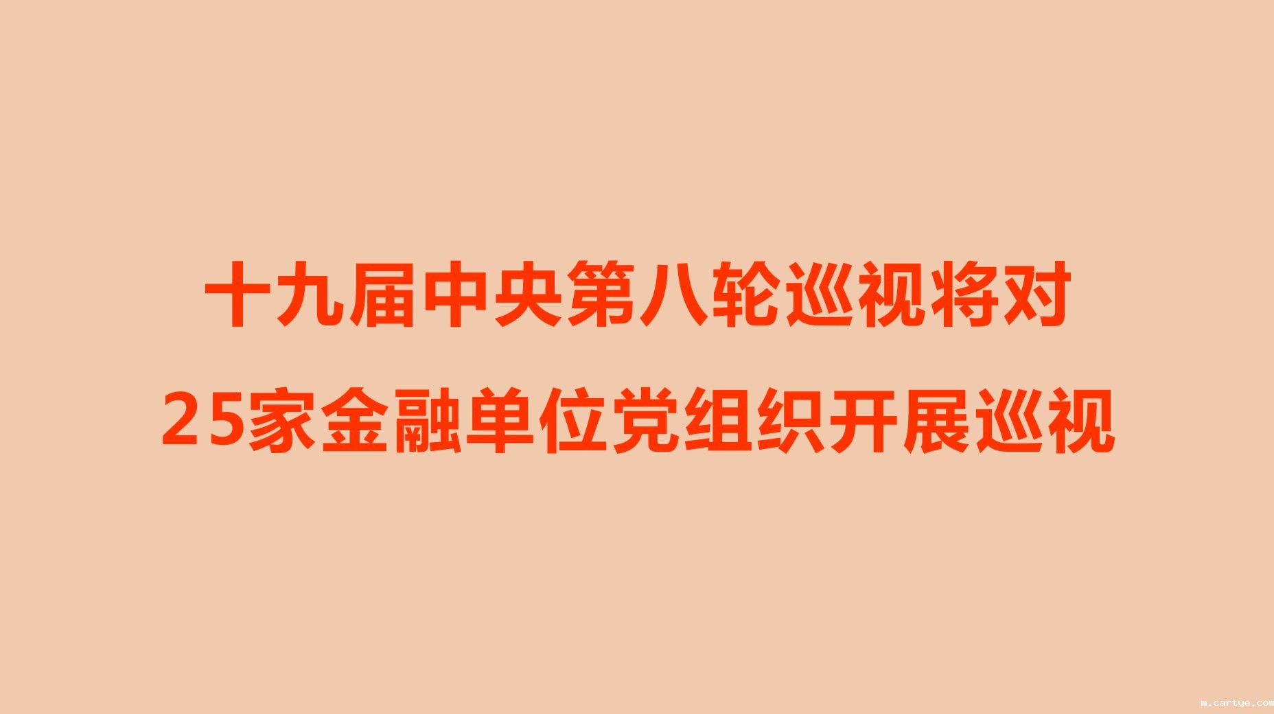 新华社北京9月26日电 经党中央批准,十九届中央第八轮巡视将对中国人民银行、中国银行保险监督管理委员会、中国证券监督管理委员会、国家外汇管理局、中国投资有限责任公司、国家开发银行、中国进出口银行、中国农业发展银行、中国工商银行股份有限公司、中国农业银行股份有限公司、中国银行股份有限公司、中国建设银行股份有限公司、交通银行股份有限公司、中国中信集团有限公司、中国光大集团股份公司、中国人民保险集团股份有限公司、中国人寿保险(集团)公司、中国太平保险集团有限责任公司、中国出口信用保险公司、上海证券交易所、深圳证券交易所、中国华融资产管理股份有限公司、中国长城资产管理股份有限公司、中国东方资产管理股份有限公司、中国信达资产管理股份有限公司等25家金融单位党组织开展常规巡视。