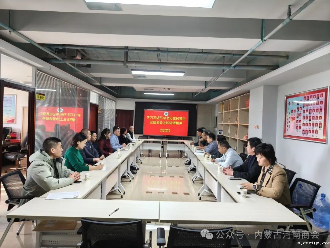 2月22日,内蒙古河南商会组织部分会员传达学习中央民营企业座谈会精神,交流学习收获与体会,并结合习近平总书记重要讲话精神,研究贯彻下一步落实工作。座谈会上,与会的20位商会会员围绕“如何贯彻落实民营企业座谈会精神”“面对民营经济广阔发展前景,内蒙古民营企业如何大显身手”等话题进行了交流发言,分享了感受和新规划。