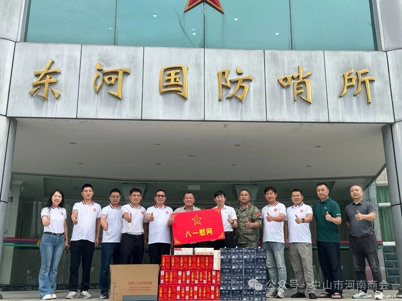 7月31日下午,中山市河南商会组织10余名商会代表,带着对驻守一线官兵的深切牵挂,将一批医用一次性防护服、降暑王老吉、牛奶等慰问物资送达哨所。亲切慰问驻守于此的武警战士,以实际行动传递商会军民携手同心、共筑平安的深厚情谊。